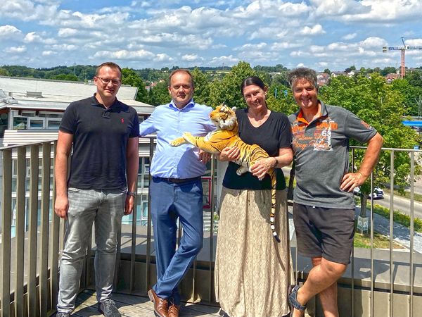 Die Vorstände Viktor Wagner (FCG) und Volker Bräuninger (TVS) übergeben die Spende an unseren „FÖRDI – Förderverein aller Remchinger Kinder und Jugendlichen“ mit den Vorstandmitgliedern Michaela Ungerer und Rainer Zilly.