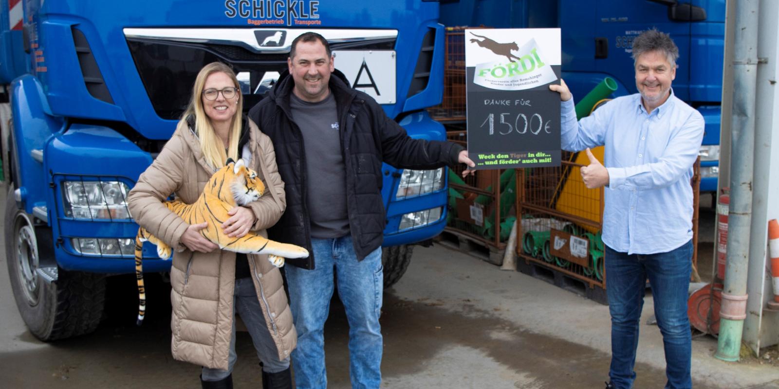 Vor Weihnachten gab es die erste Firmenspende von der Matthias Schickle GmbH, Baggerbetrieb und Transport.